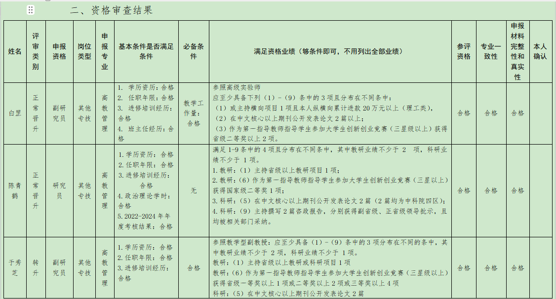 经我单位职称评审工作小组成员审查并讨论,现将资格审查结果公示如下: